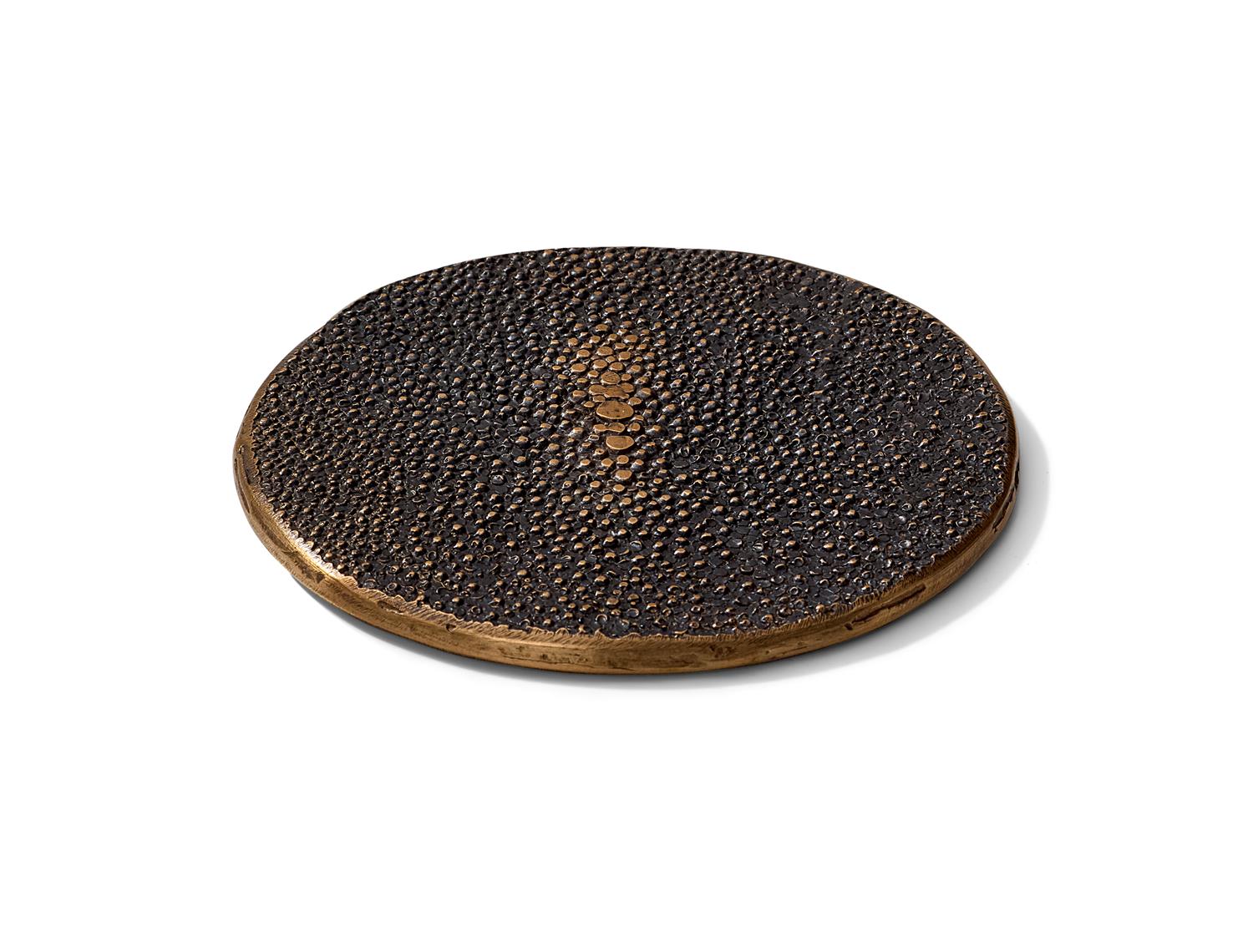 Each coaster is individually handcrafted in solid bronze, reflecting the unique textures and artisanal details of our design process.